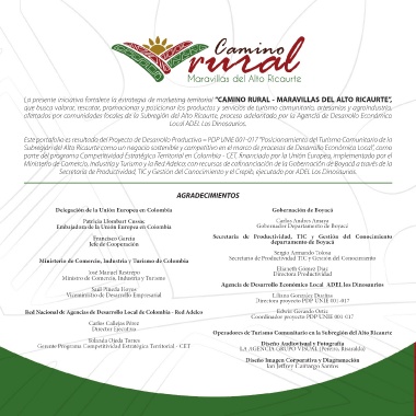 La presente iniciativa fortalece la estrategia de marketing territorial “CAMINO RURAL - MARAVILLAS DEL ALTO RICAURTE”,